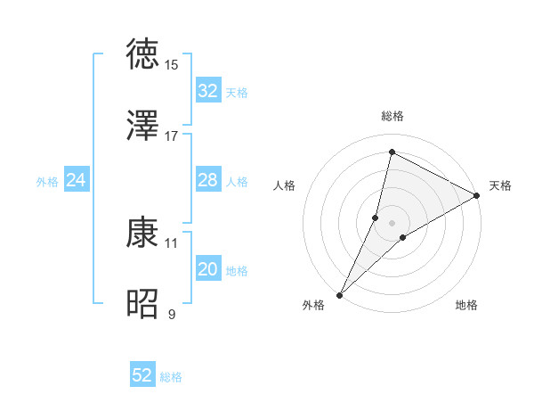 徳澤 康昭さんを姓名の画数から五運を鑑定