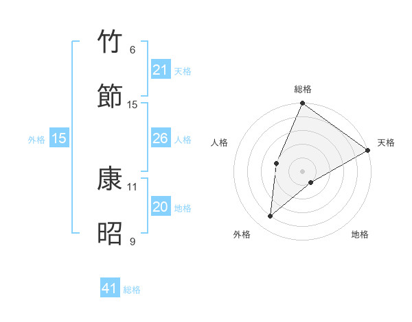 竹節 康昭さんの総格は41画の5点!