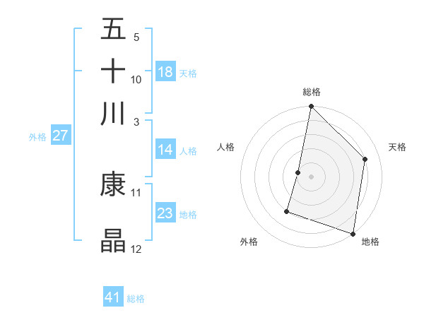 五十川 康晶さんを姓名の画数から五運を鑑定