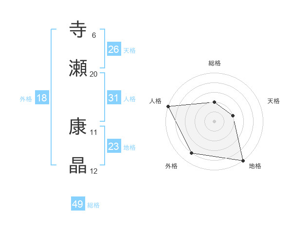 寺瀬 康晶さんを姓名の画数から五運を鑑定