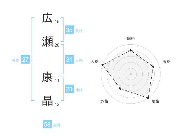 広瀬 康晶さんの総格は58画の4点!