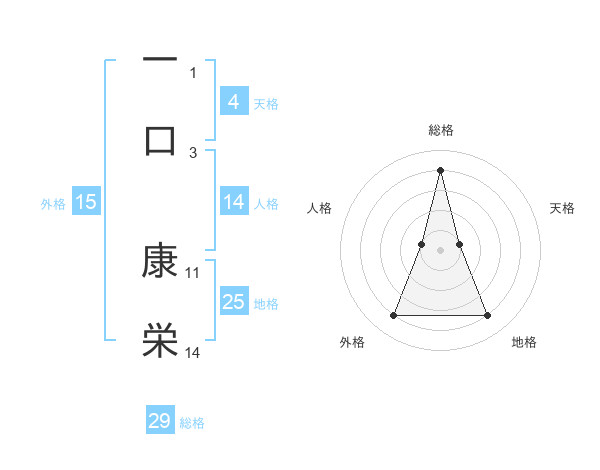 一口 康栄さんの総格は29画の4点!
