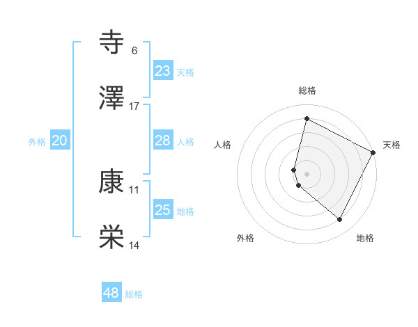 寺澤 康栄さんの総格は48画の4点!