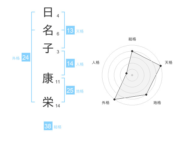 日名子 康栄さんを姓名の画数から五運を鑑定
