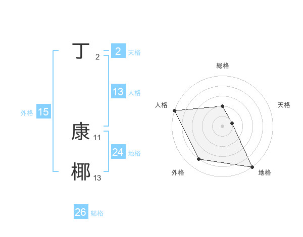 丁 康椰さんの総格は26画の2点!