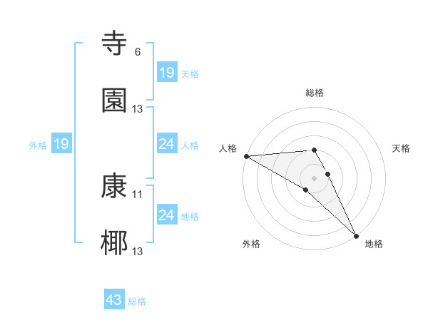 寺園 康椰さんを姓名の画数から五運を鑑定