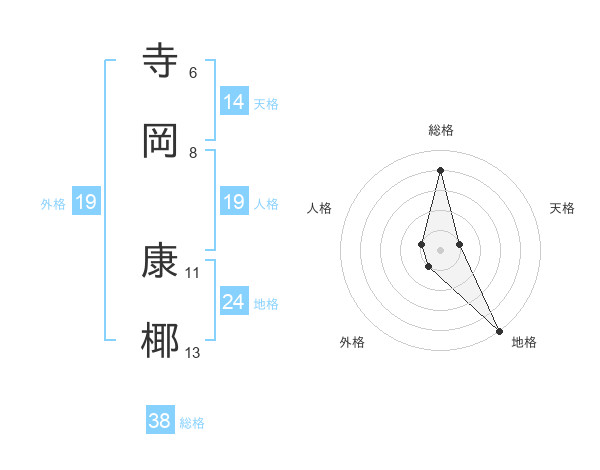 寺岡 康椰さんの総格は38画の4点!