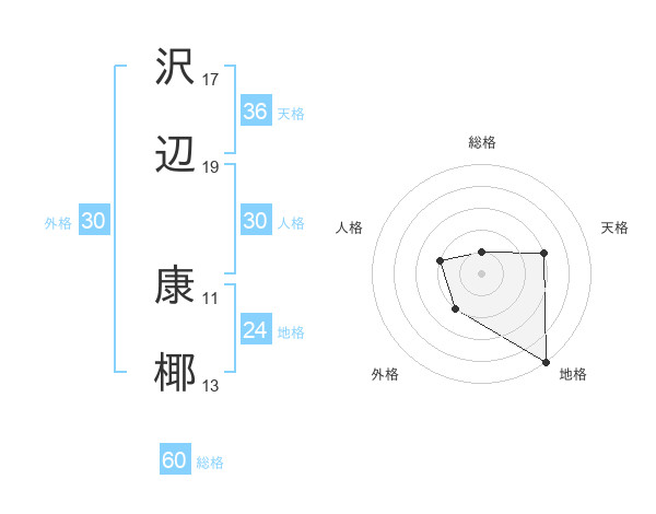 沢辺 康椰さんを姓名の画数から五運を鑑定