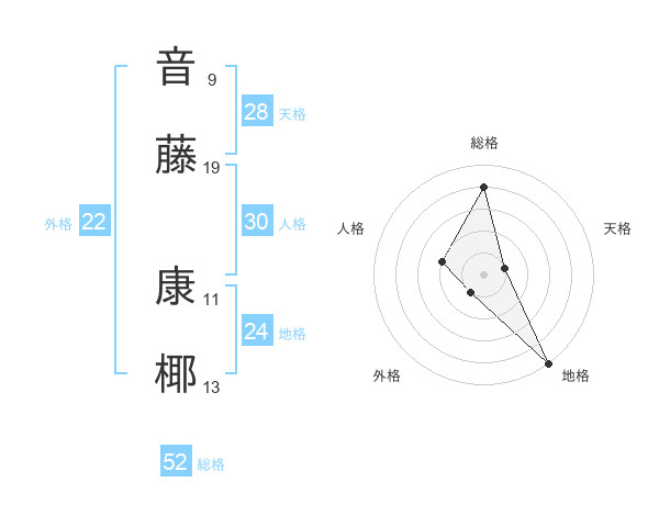音藤 康椰さんの総格は52画の4点!