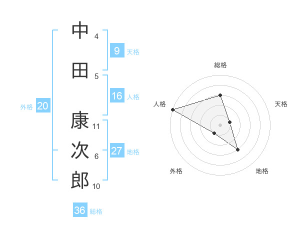 中田 康次郎さんを姓名の画数から五運を鑑定