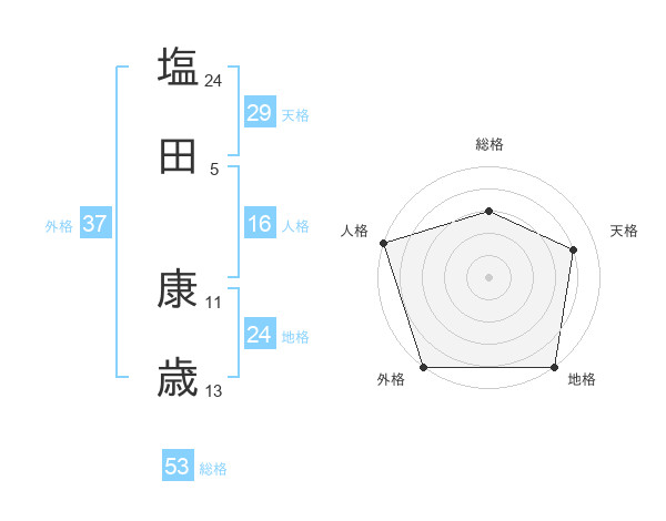 塩田 康歳さんの総格は53画の3点!