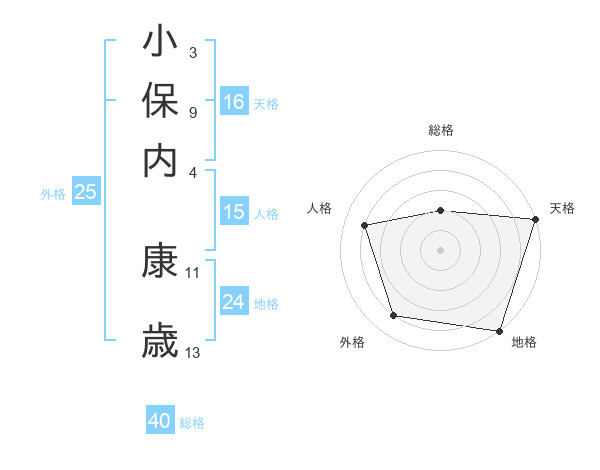 小保内 康歳さんを姓名の画数から五運を鑑定