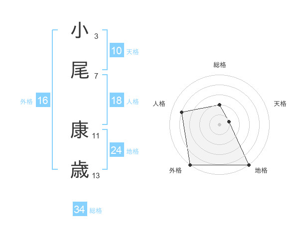 小尾 康歳さんの総格は34画の2点!