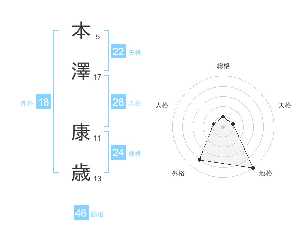 本澤 康歳さんを姓名の画数から五運を鑑定