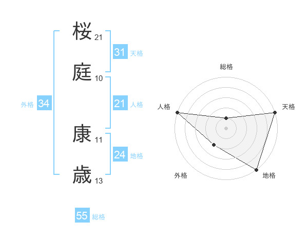 桜庭 康歳さんの総格は55画の1点!