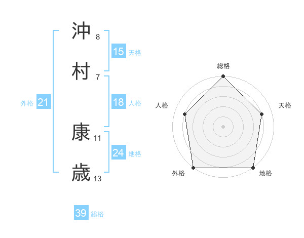 沖村 康歳さんを姓名の画数から五運を鑑定