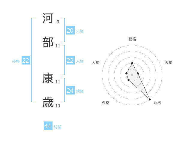 河部 康歳さんの総格は44画の2点!