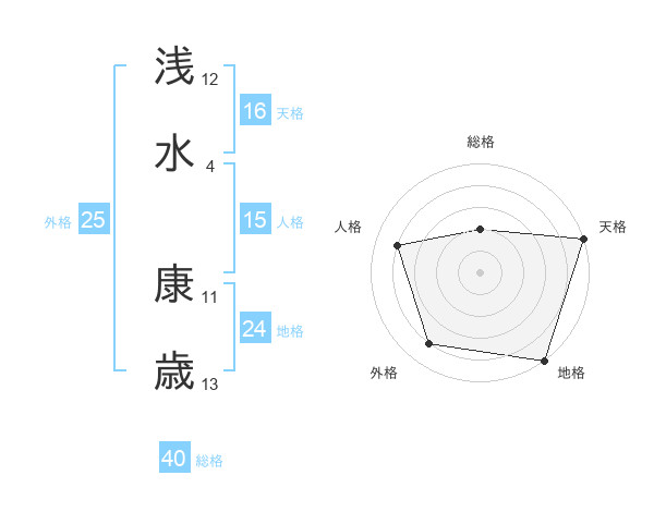 浅水 康歳さんの天格は16画の5点!