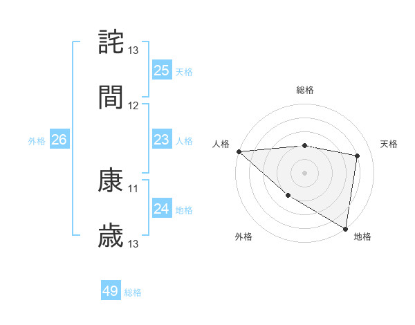 詫間 康歳さんを姓名の画数から五運を鑑定