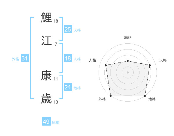 鯉江 康歳さんの天格は25画の4点!