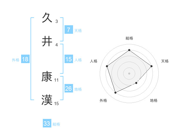 久井 康漢さんの総格は33画の4点!