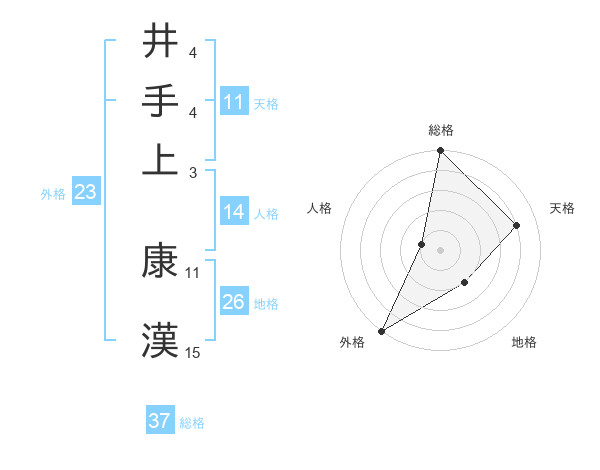 井手上 康漢さんを姓名の画数から五運を鑑定