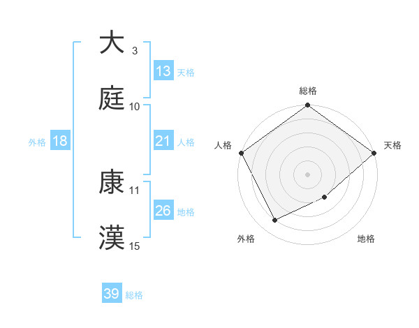 大庭 康漢さんを姓名の画数から五運を鑑定