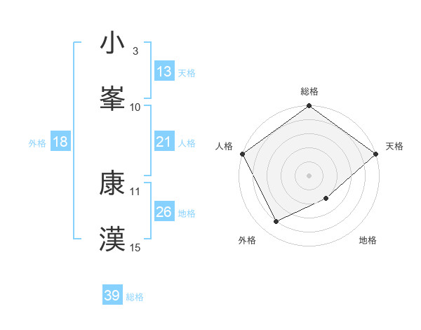 小峯 康漢さんを姓名の画数から五運を鑑定