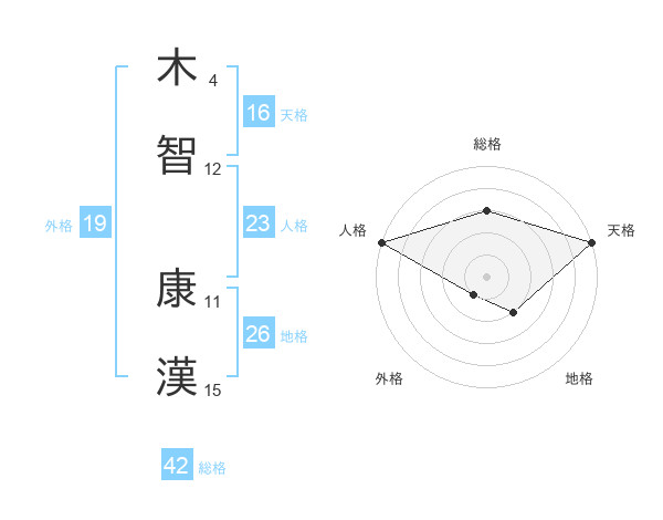 木智 康漢さんの総格は42画の3点!
