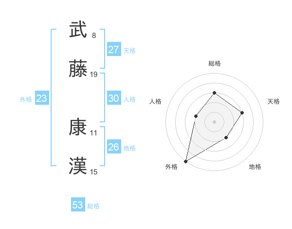 武藤 康漢さんの総格は53画の3点!