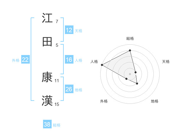 江田 康漢さんの総格は38画の4点!