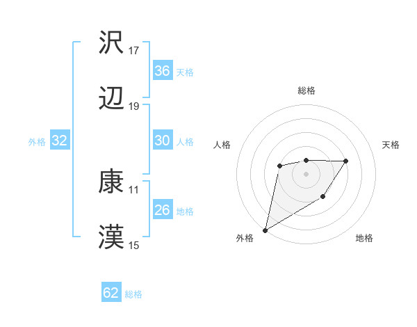 沢辺 康漢さんの天格は36画の3点!