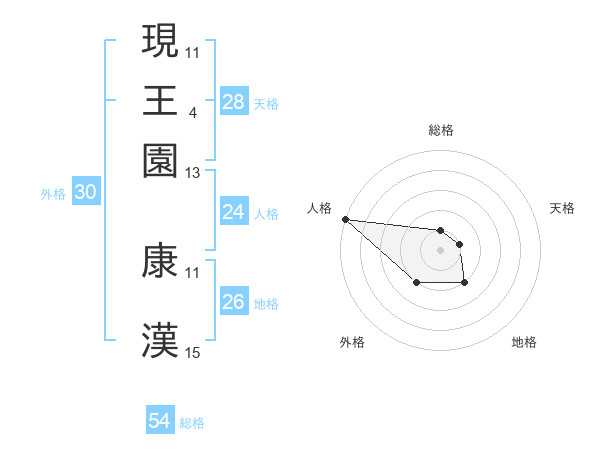 現王園 康漢さんを姓名の画数から五運を鑑定