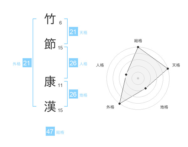 竹節 康漢さんの総格は47画の5点!
