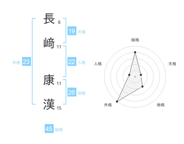 長﨑 康漢さんの外格は23画の5点!