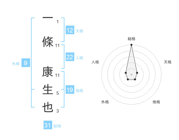一條 康生也さんの総格は31画の5点!