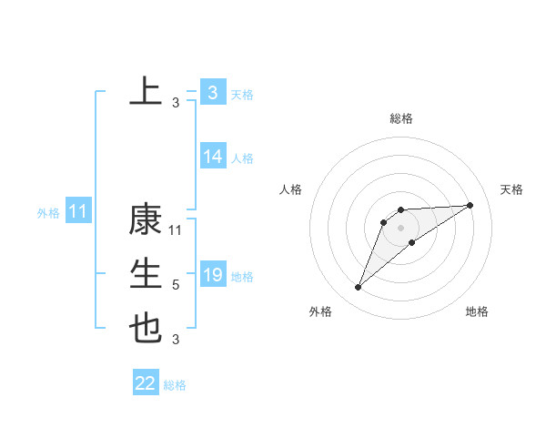 上 康生也さんの総格は22画の1点!