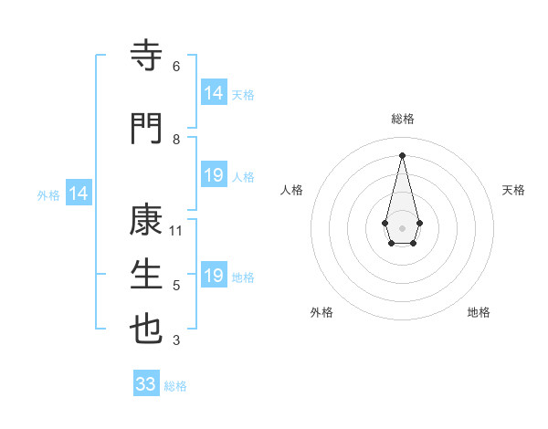 寺門 康生也さんの総格は33画の4点!
