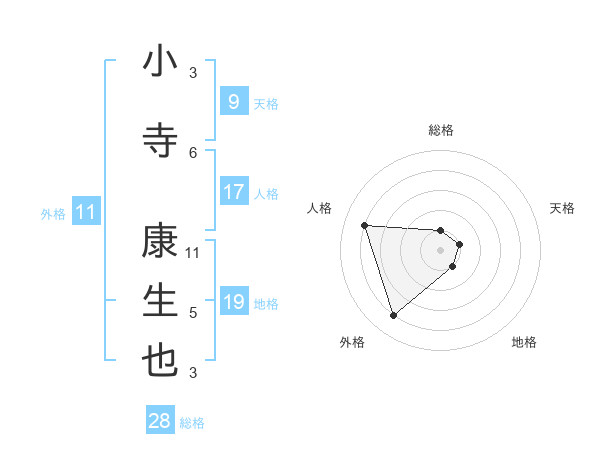 小寺 康生也さんを姓名の画数から五運を鑑定