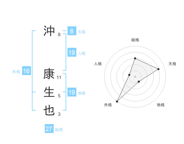 沖 康生也さんの総格は27画の3点!