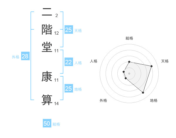 二階堂 康算さんを姓名の画数から五運を鑑定