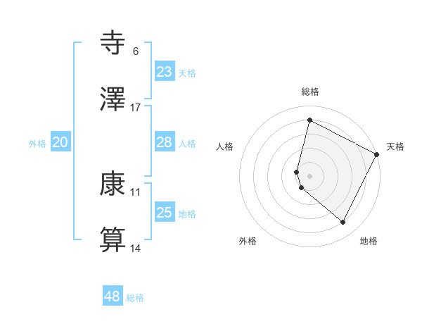 寺澤 康算さんの天格は23画の5点!