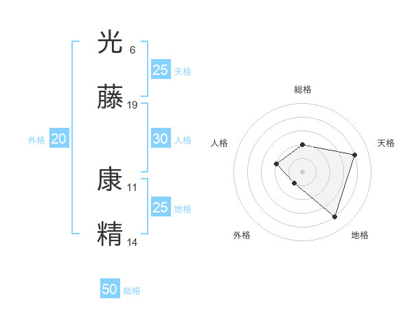 光藤 康精さんの天格は25画の4点!