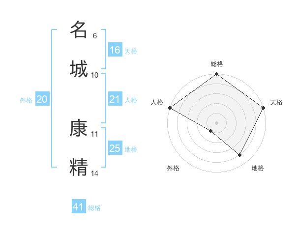 名城 康精さんの天格は16画の5点!
