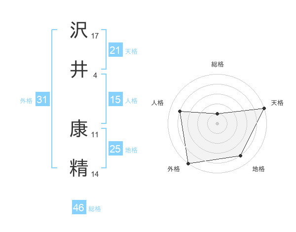 沢井 康精さんの天格は21画の5点!