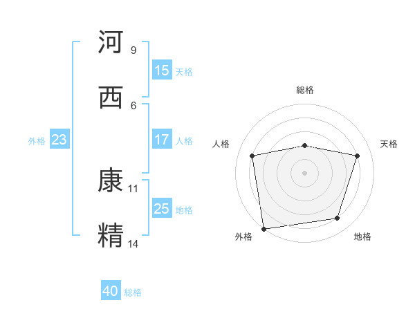 河西 康精さんの天格は15画の4点!