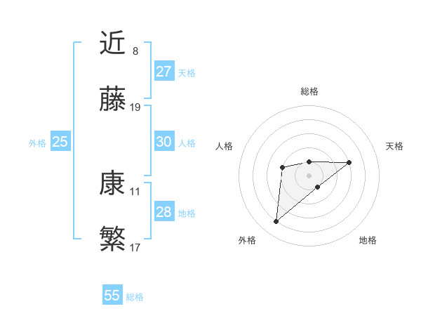 近藤 康繁さんを姓名の画数から五運を鑑定