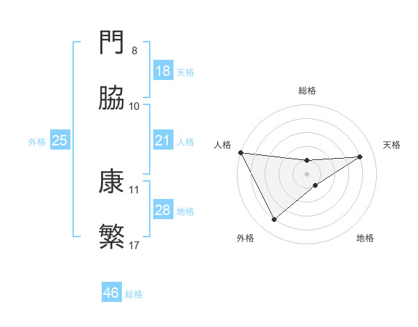 門脇 康繁さんを姓名の画数から五運を鑑定