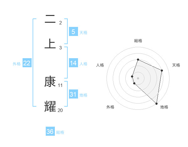 二上 康耀さんの天格は5画の4点!