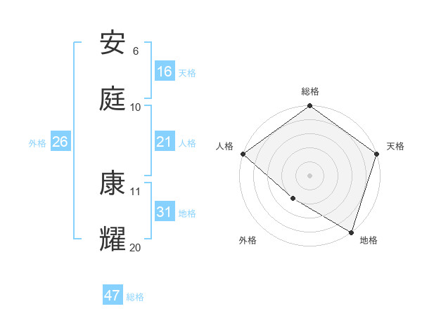 安庭 康耀さんを姓名の画数から五運を鑑定